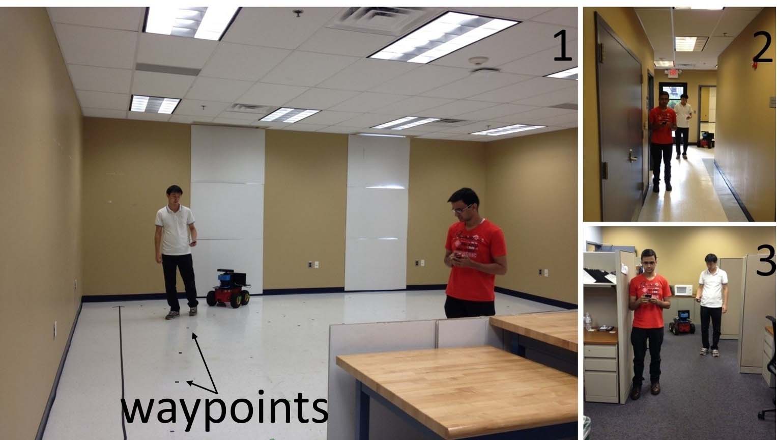 Smartphone localization with robot assistance in indoor lab/office environment.